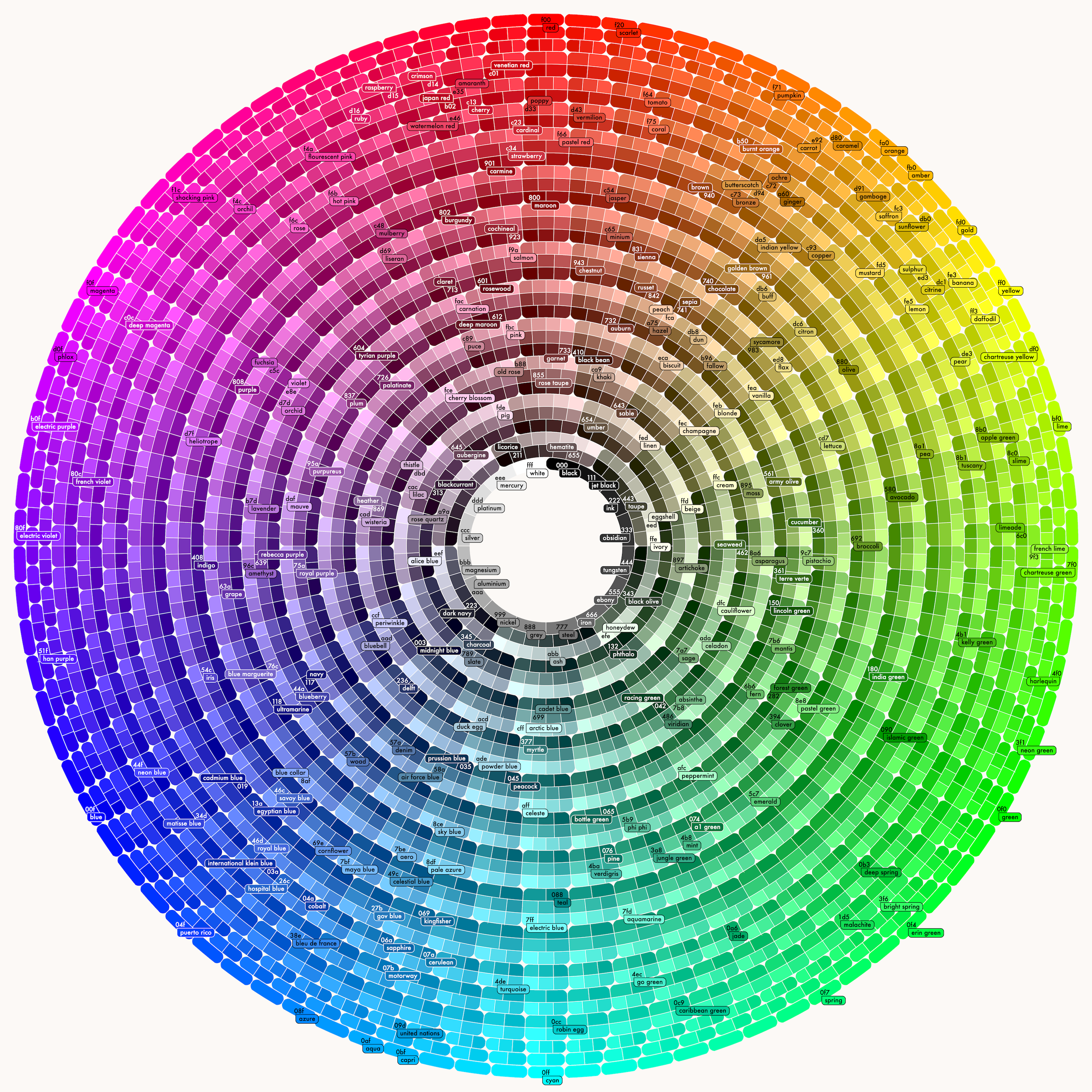 A disc of many colours. It may not show on all devices. You can also download the colour disc image with named colours (PNG format, 8.5 MB).
