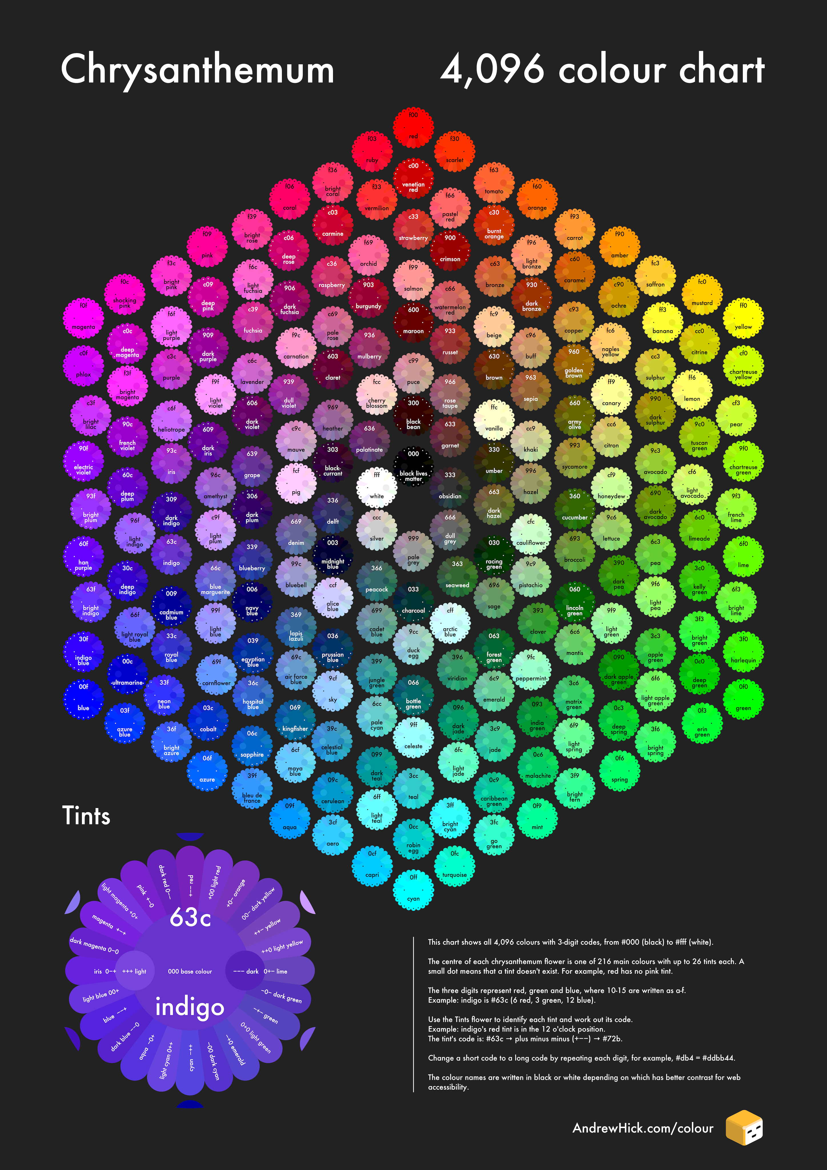 Before the colour mosaic was the Chrysanthemum colour chart which used a system of 216 base colours, each with up to 27 tints.